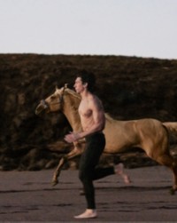 Theres the magnetic leading man played by Adam Driver who storms topless. Shot on location in Tenerife. Todays accidental Burberry leak of Adam Driver on a horse behind-the-scenes is confirmed to be from September 2019 and is not recent.